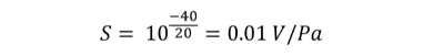 For example, a microphone with a sensitivity of –40 dBV/Pa corresponds to: